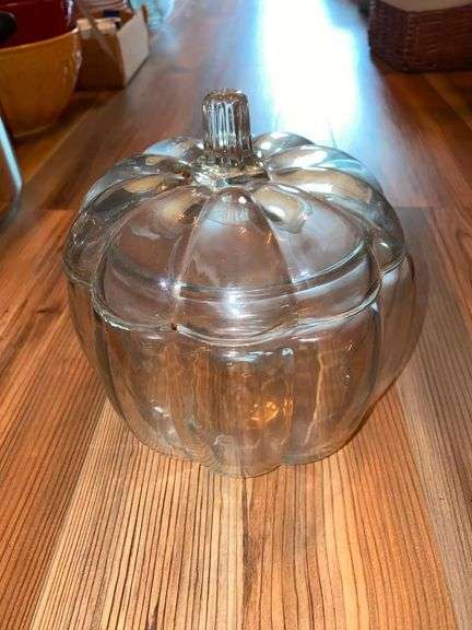 Clear Pressed Glass Trinket Box/Blue Hobnail Glass Votive